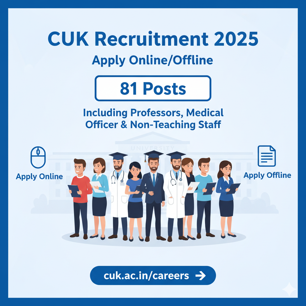 CUK Recruitment 2025 Apply Online/Offline for 81 Posts Including Professors Medical Officer & Non Teaching Staff