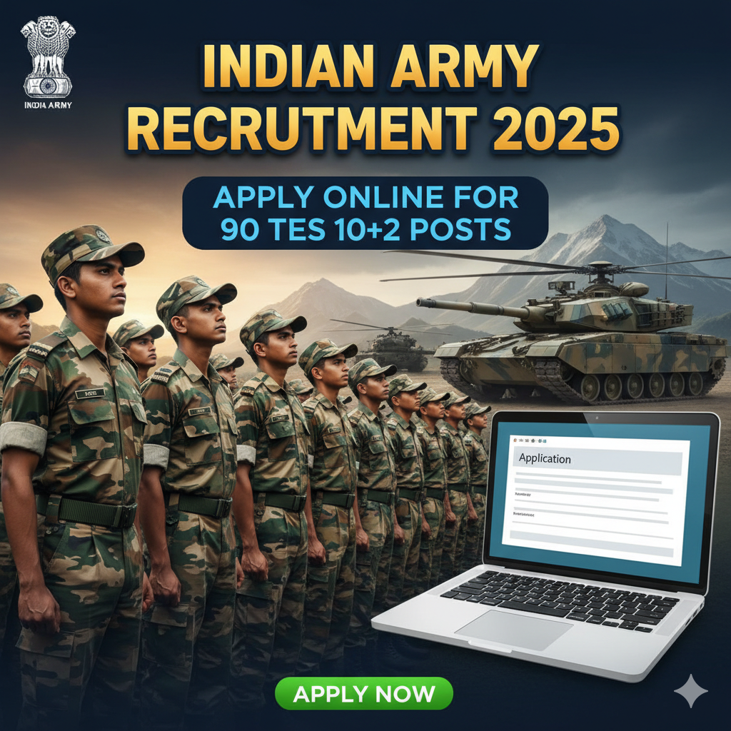 Indian Army Recruitment 2025 Notification: Join Indian Army has released the official notification for 90 vacancies under the 10+2 Technical Entry Scheme (TES). Eligible candidates who have completed 10+2 can apply online for this prestigious opportunity. The online application process starts from 14th October 2025, and the last date to apply is 13th November 2025.